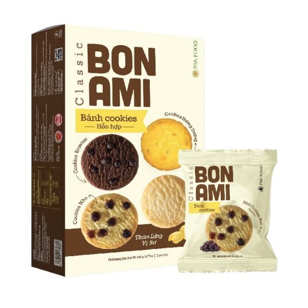 Bột mì, đường, dầu thực vật, bơ lạt (9%), sữa nguyên kem (4%), bơ thực vật (2.2%), muối, chất nhũ hóa (481(i)), chất tạo xốp (503(ii), 500(ii)), hương liệu (sữa, vani) tổng hợp, chất xử lý bột (1101(i), 516).