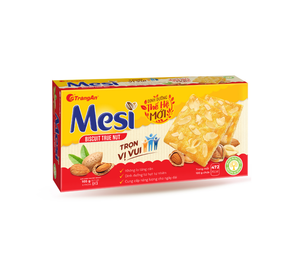 Bánh quy hạt dinh dưỡng Mesi - Mesi Biscuit True Nut được làm từ các loại hạt chứa các dưỡng chất tốt, đem lại nguồn năng lượng tích cực cho cơ thể.