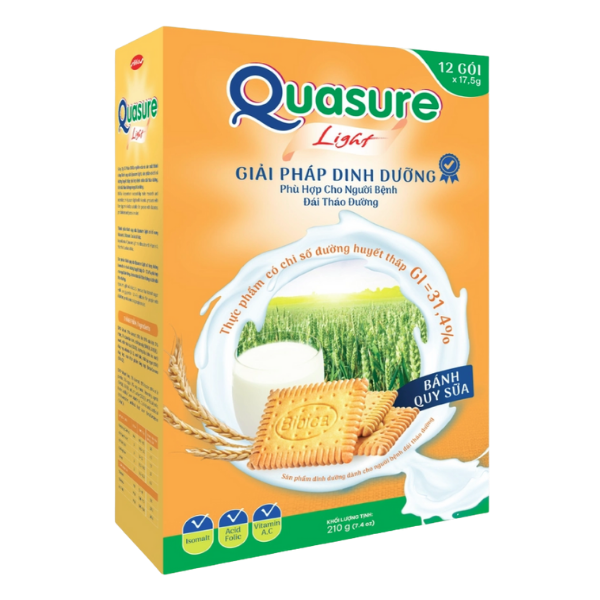 2 gói bánh quy sữa Quasure Light (20g/gói) tương đương 1 bữa ăn phụ. Mỗi ngày có thể sử dụng tối đa 6 gói.