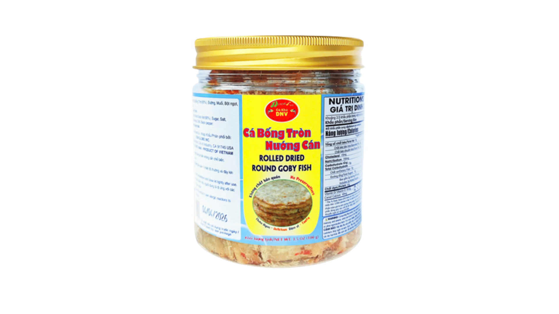 Thành phần: Cá Bống khô(90%), Đường, Muối, Mononatri L-glutamat, Ớt, Tiêu.