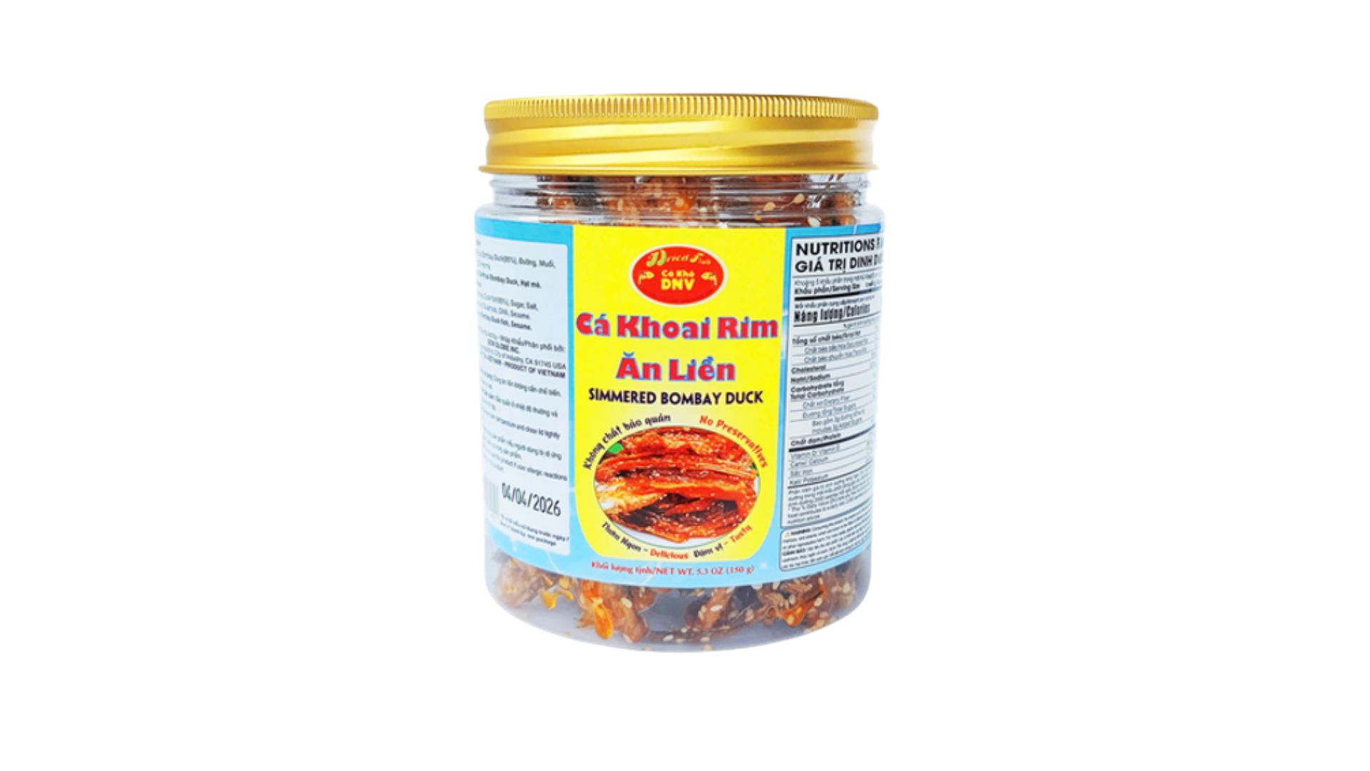Thành phần: Khô Cá Khoai Bombay Duck (95%), Đường, Muối, Bột ngọt, Ớt, Hạt mè.