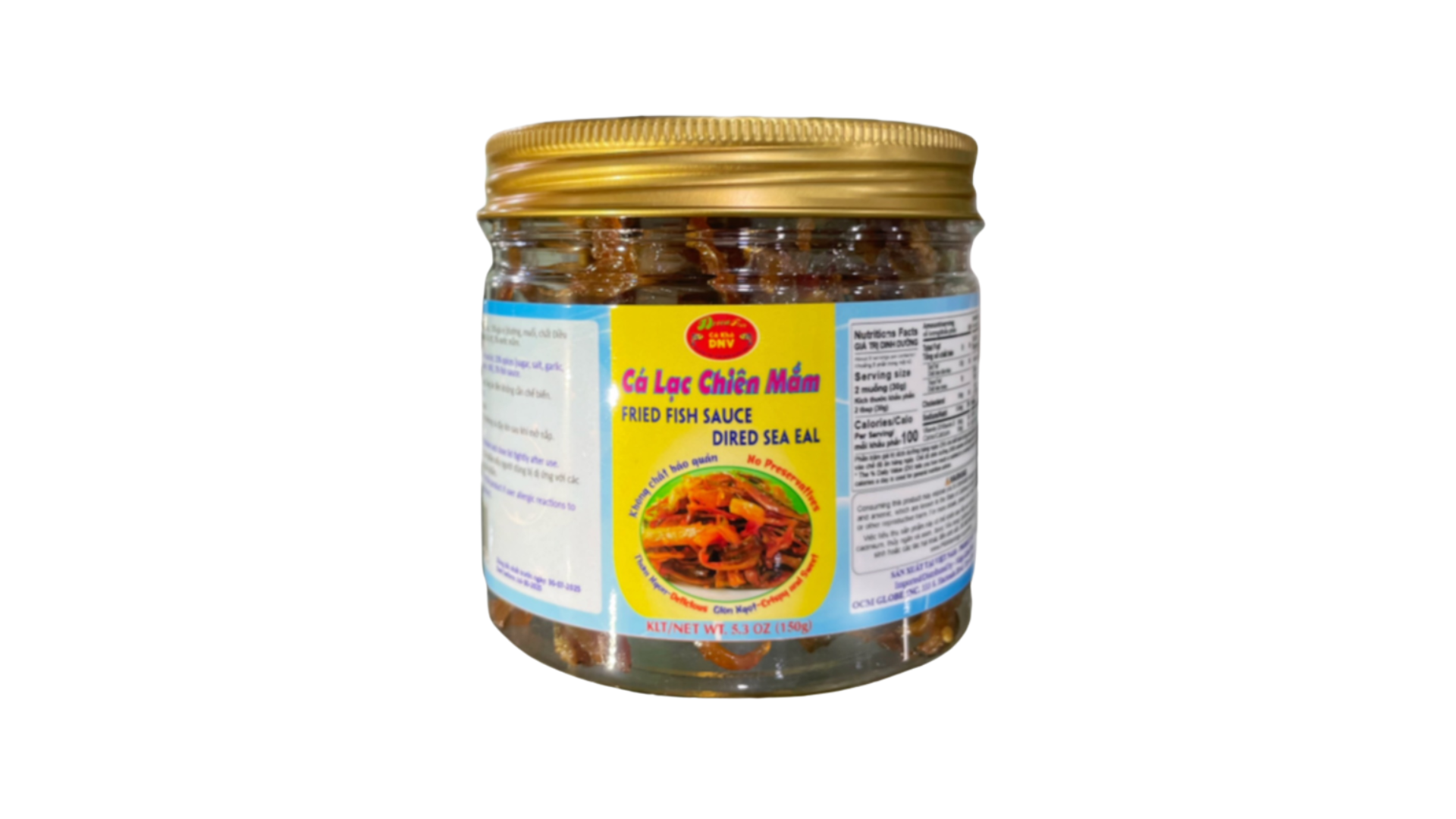 Ingredients: Dried sea Eal (85%), Sugar, Salt, Fish sauce (Anchovy, Salt, E950, E627, E631) (2%), Monosodium L-glutamate, Chili, Garlic.