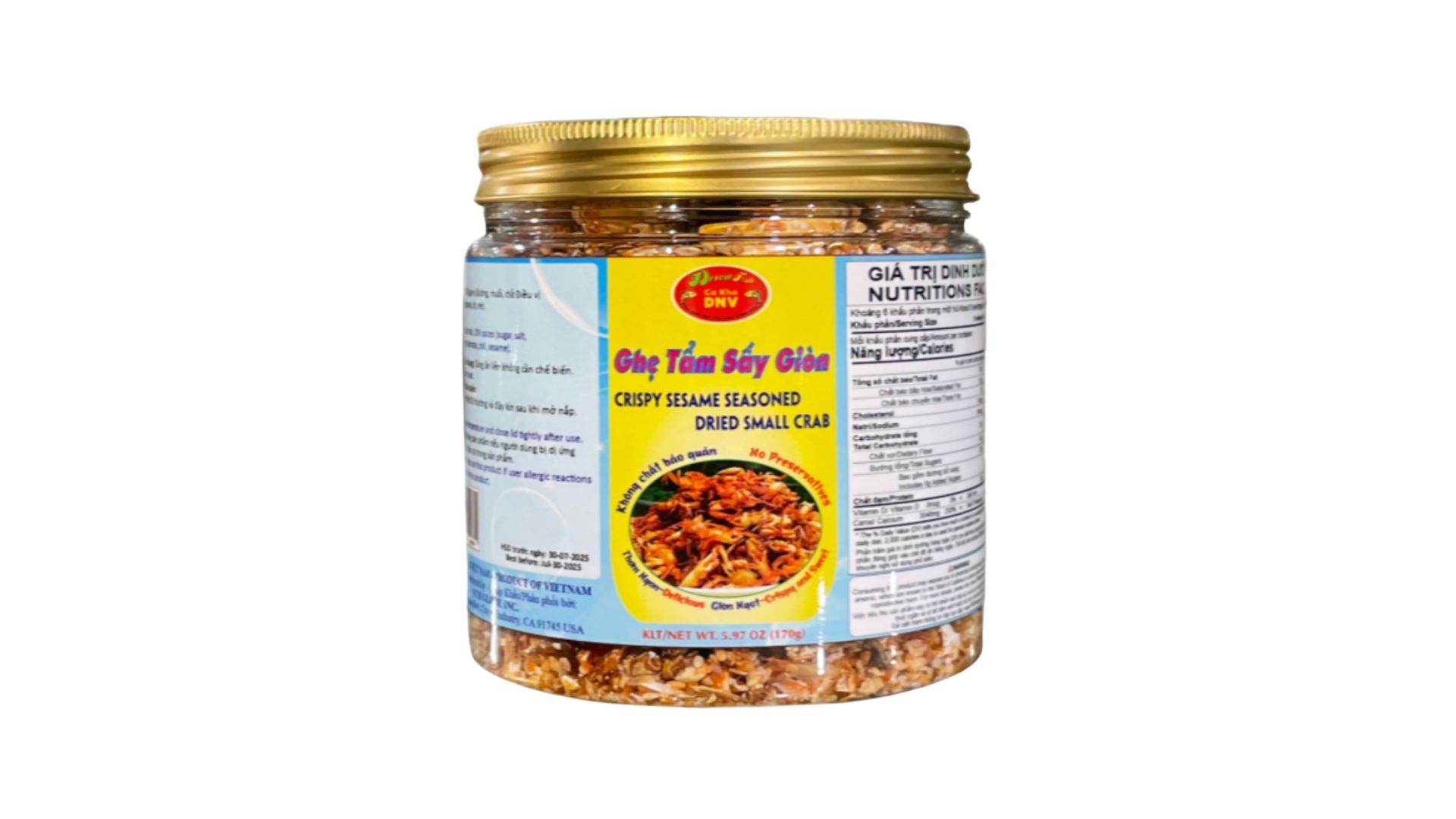 Ingredients: Dried small crab (90%), Salt, Sugar, Monosodium L-glutamate, Chili, Sesame.