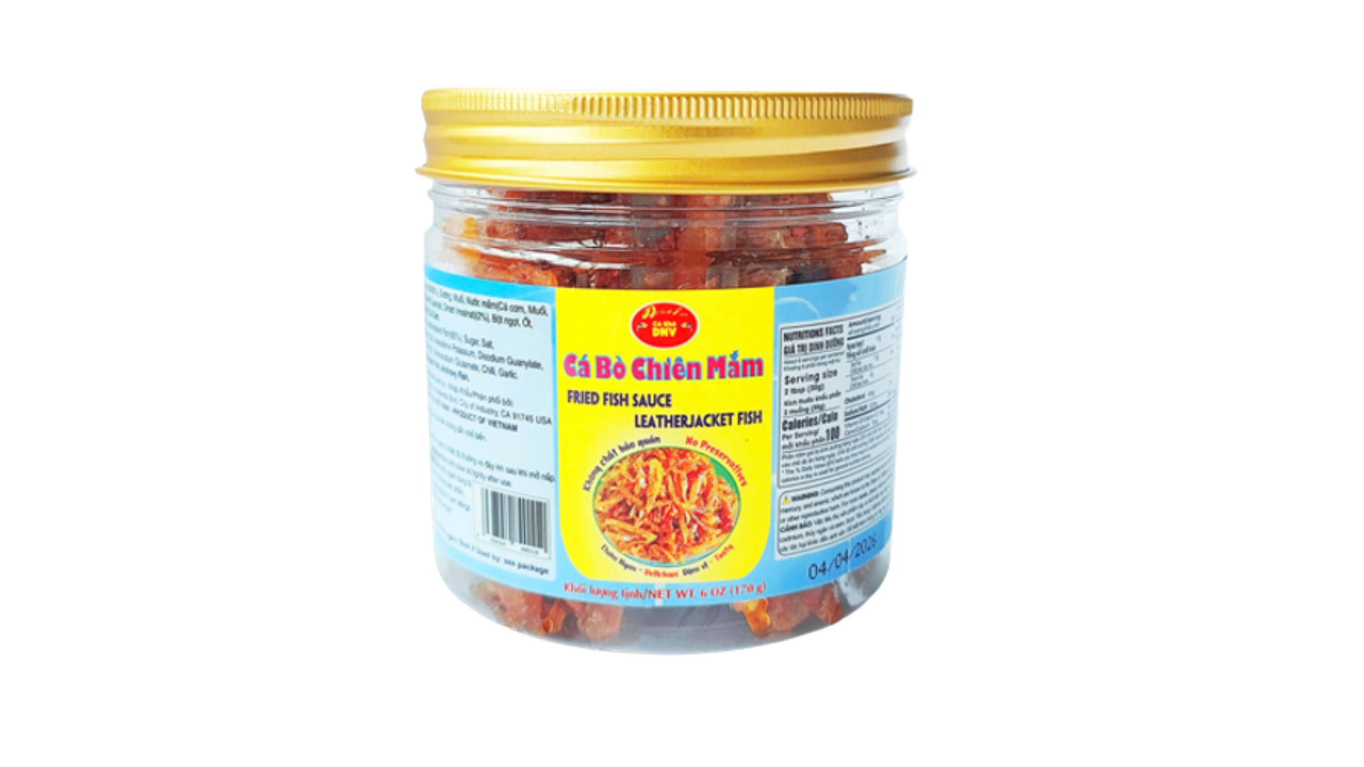 Ingredients: Dried Leatherjacket Fish (85%), Sugar, Salt, Fish Sauce (Anchovies, Salt, E950, E627, E631) (2%), Monosodium L-glutamate, Chili, Garlic.