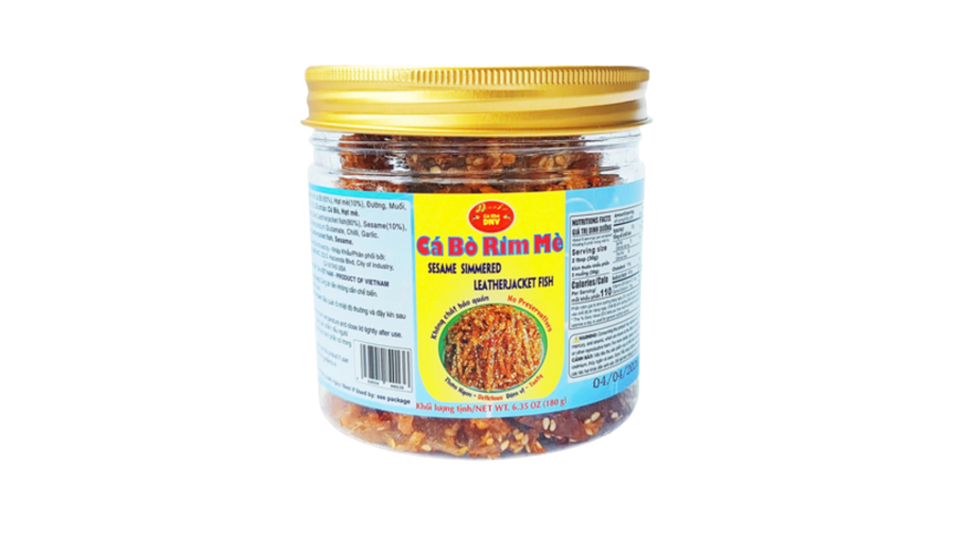 Thành phần: Khô Cá Bò(80%), Mè(10%), Đường, Muối, Mononatri L-glutamat, Ớt, Tỏi.