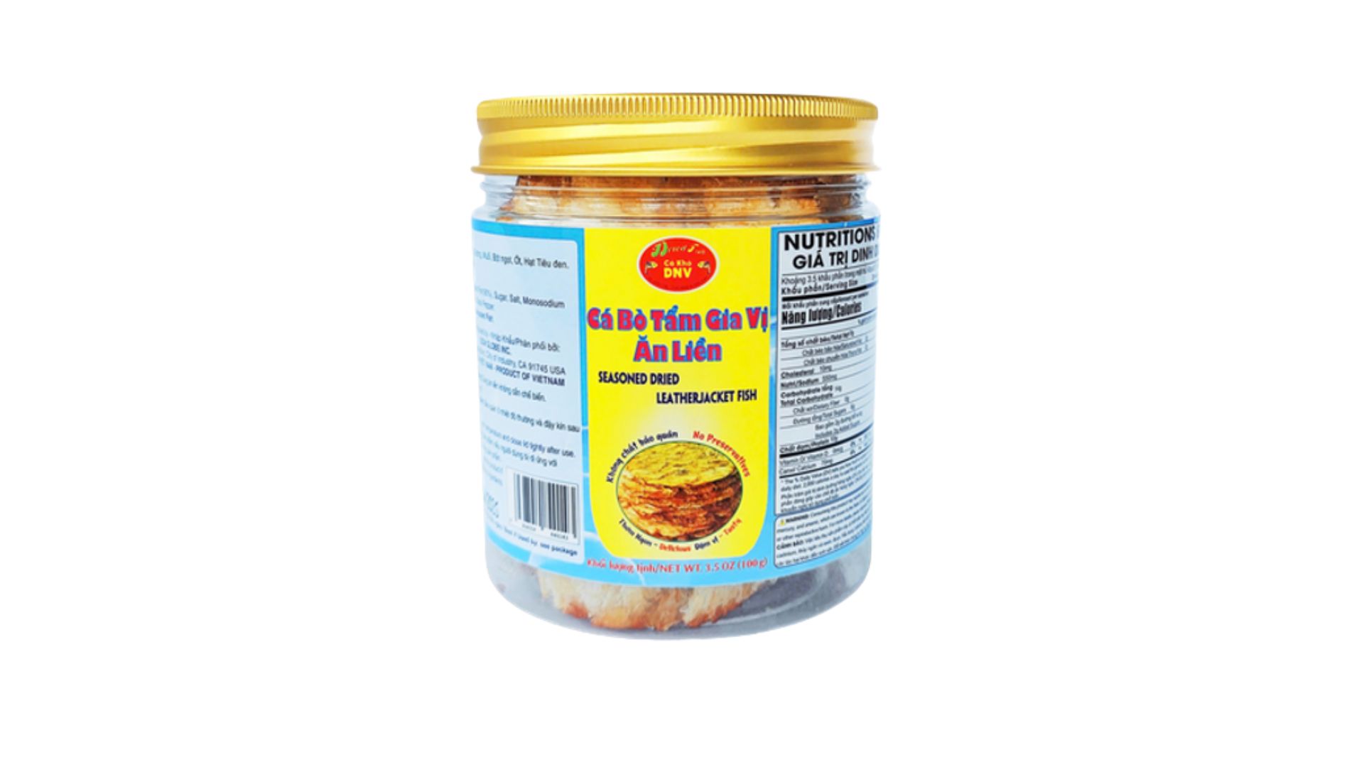 Ingredients: Dried Leatherjacket Fish(90%), Sugar, Salt, Monosodium L-glutamate, Chili, Pepper.