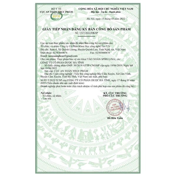 - Thương hiệu: VASTCOM – Công ty CP Khoa học Công nghệ Tảo VN.