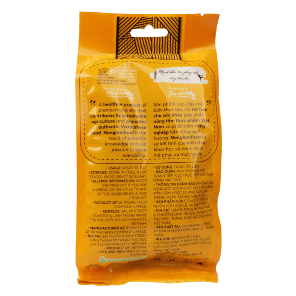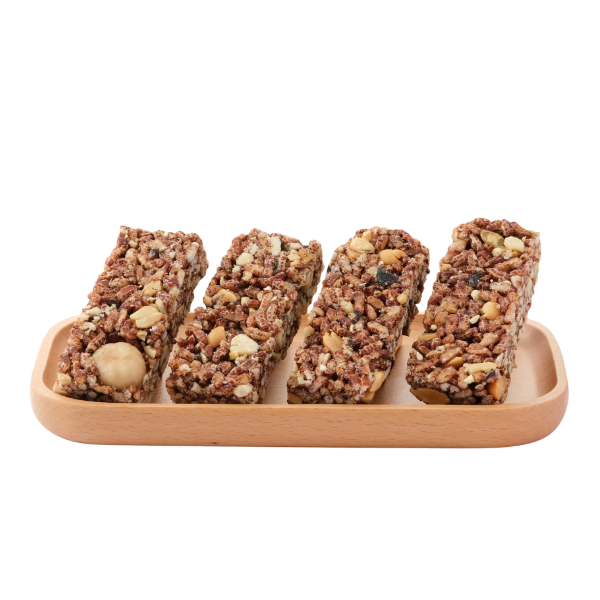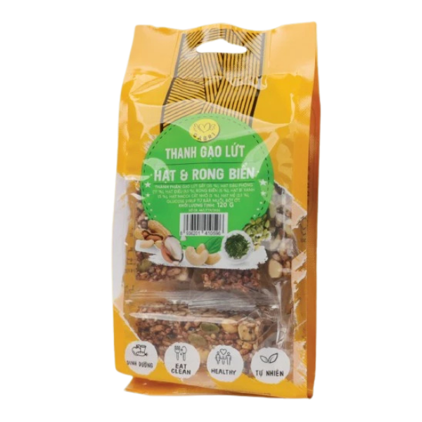Thành phần nguyên liệu: Gạo lứt sấy (35%), hạt đậu phộng, hạt điều, rong biển, hạt macca cắt nhỏ, hạt bí xanh, hạt mè, glucose syrup từ bắp, muối, bột ớt