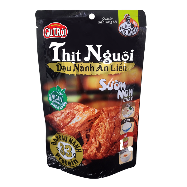 Sản phẩm được chế biến từ đậu nành xay nhuyễn kết hợp gia vị thiên nhiên, tạo thành từng lát thịt chay có kết cấu mềm, dai vừa như sườn non thật. Sau đó được nấu chín, tiệt trùng và đóng gói để giữ được độ thơm ngon và an toàn.