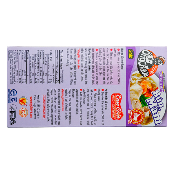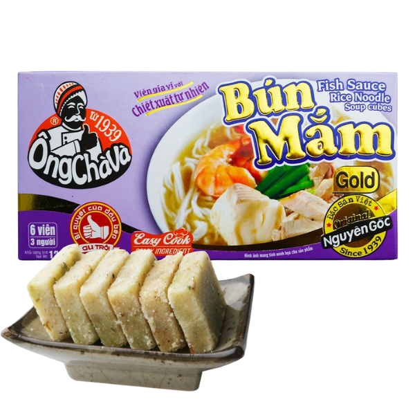 Ong Cha Va Bun Mam Seasoning Cubes are a convenient cooking solution for those who love the famous Mekong Delta specialty without spending too much time. Each cube contains the rich flavors of fermented mudfish sauce (6%), onion, lemongrass, tomato, pepper, ginger, and more—helping you quickly prepare an authentic, aromatic, and well-balanced Bun Mam broth.